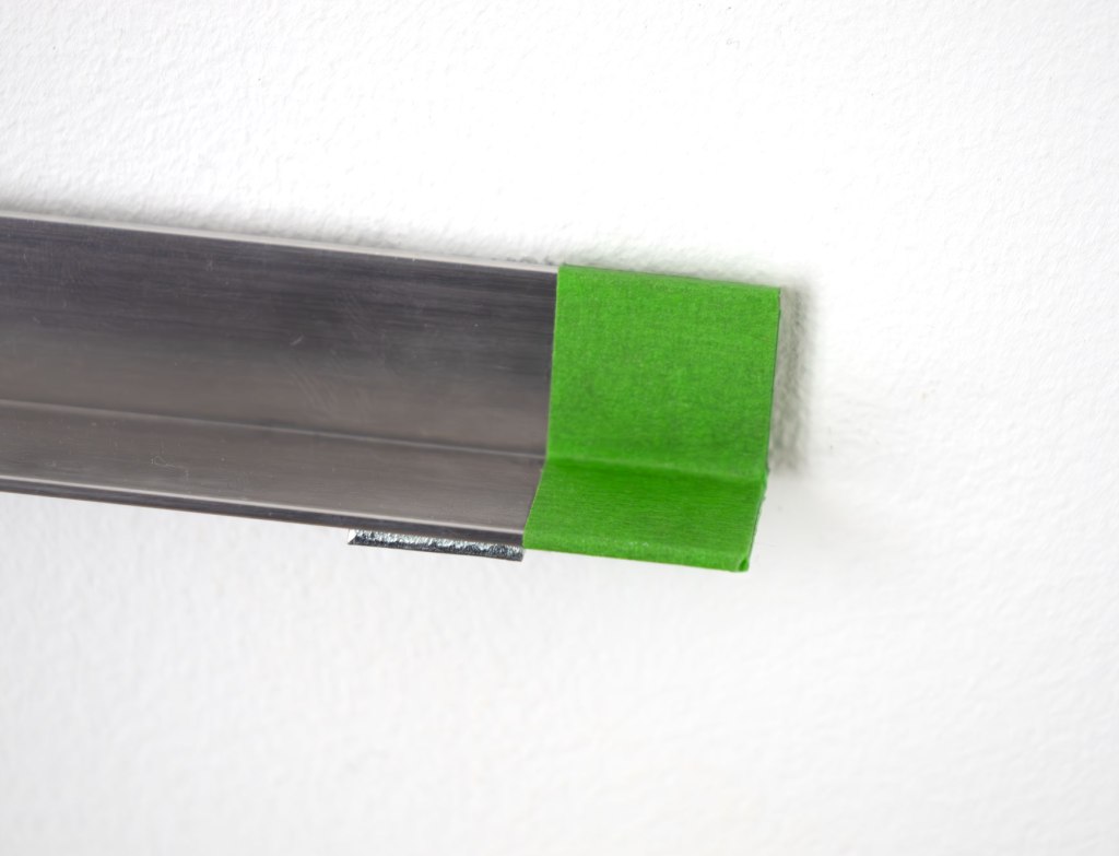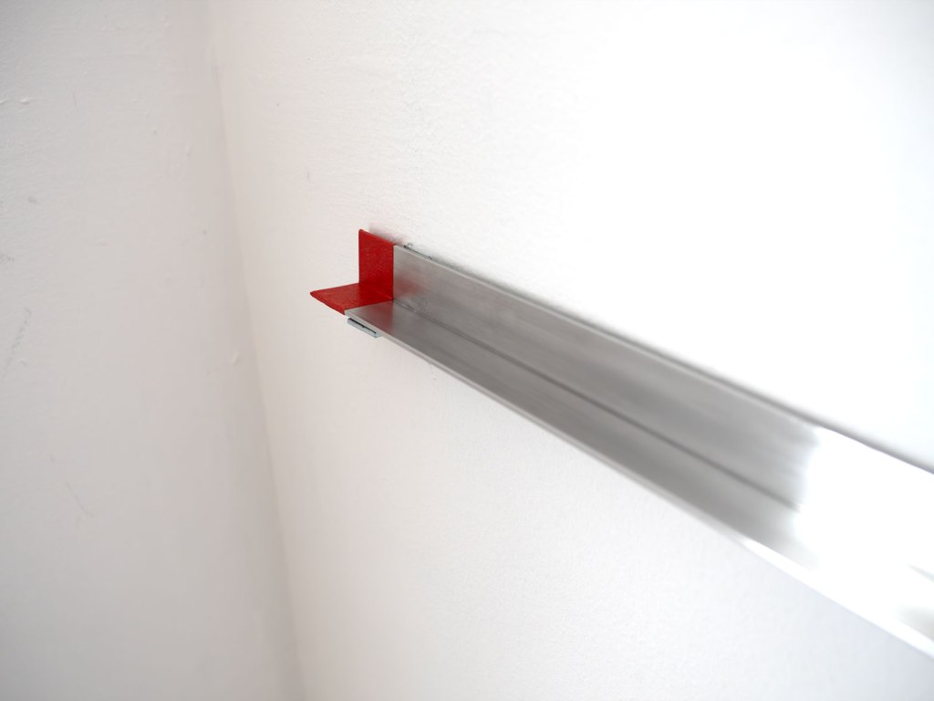 Aluminium angle bracket, masking tape. Length = 595mm, Width = 20mm, Thickness = 20mm. Metal bracket wall fixings. Series of 4.