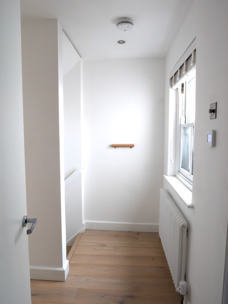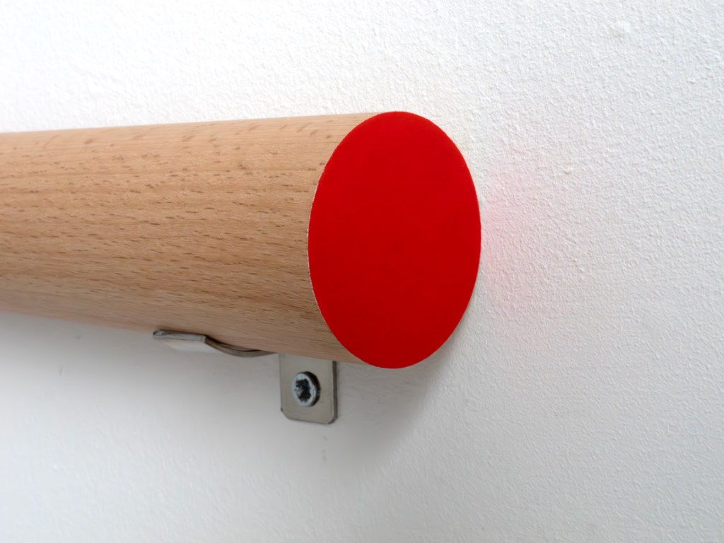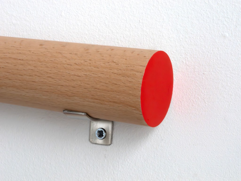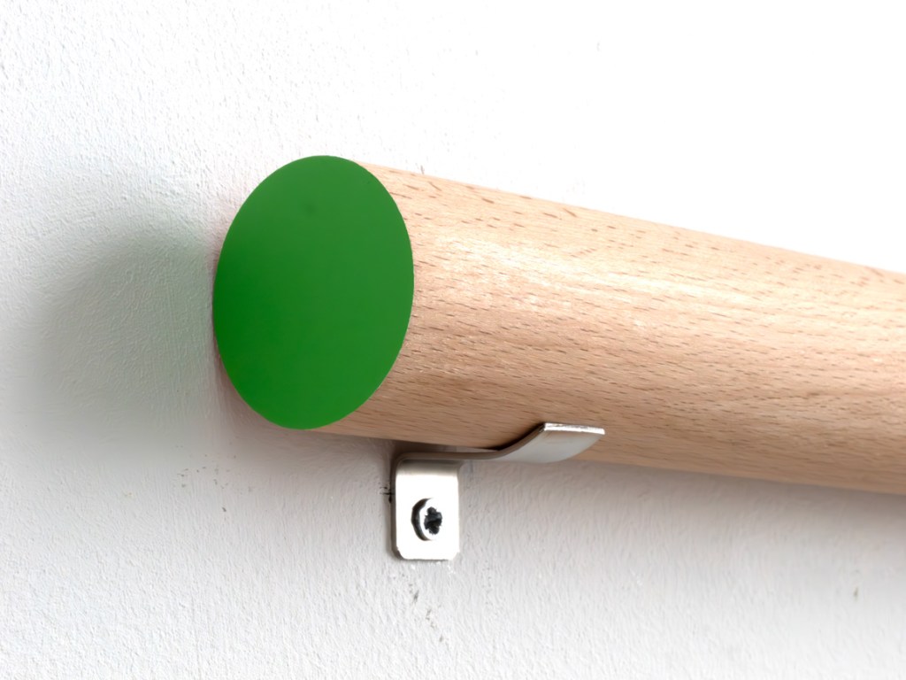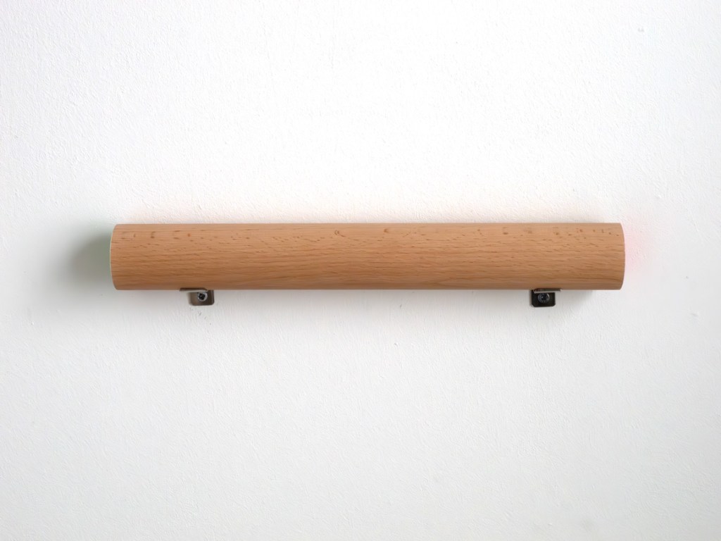 Smooth planed circular beech, paint, varnish. Length = 300mm, Diameter = 40mm, Metal bracket wall fixings. Series of 3.
