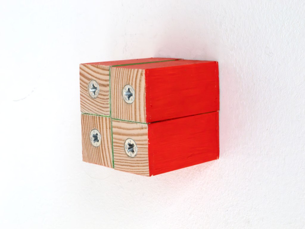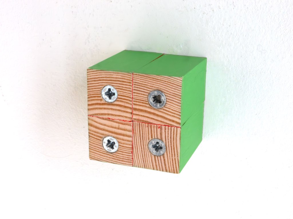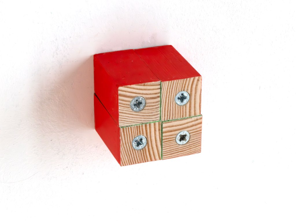 Smooth planed square beech (rotatable), paint, varnish. Length = 40mm, Width = 40mm, Depth = 40mm. Four screws. Series of 3.
