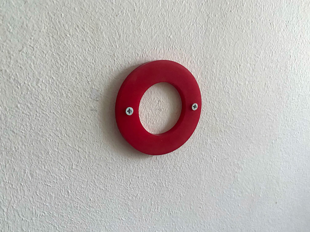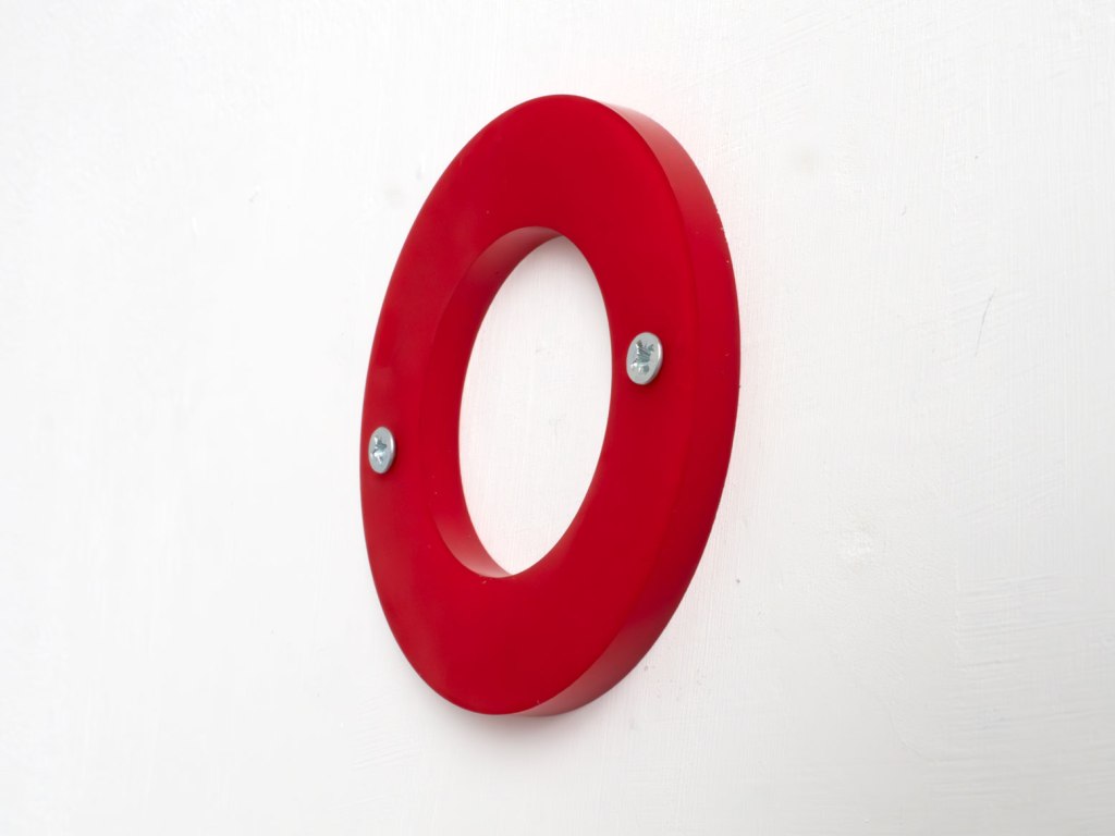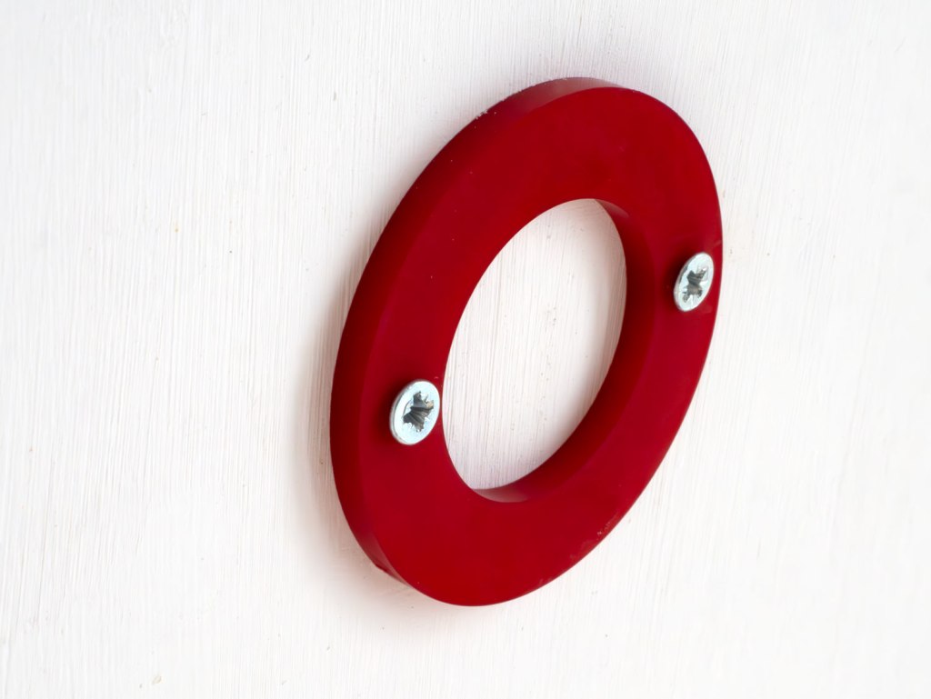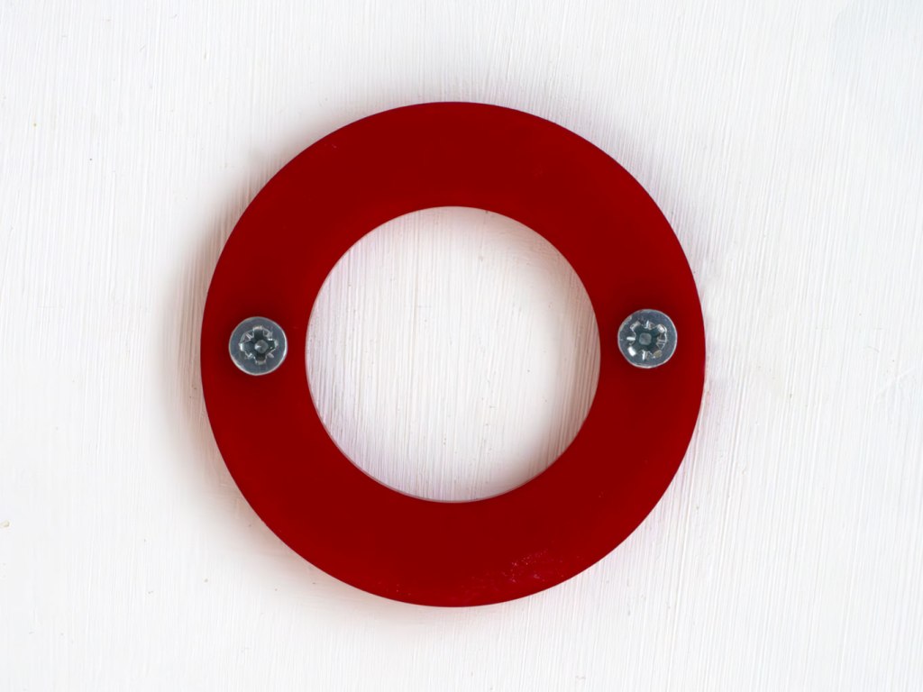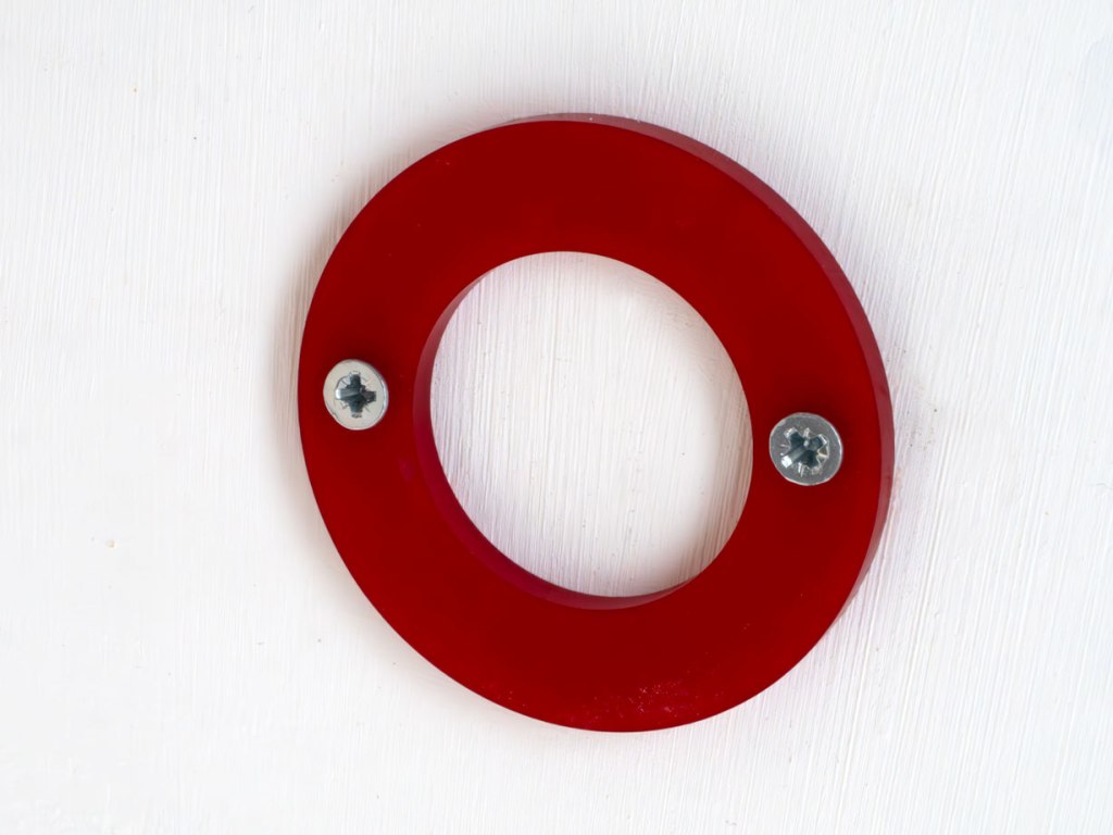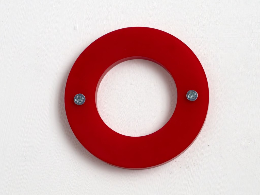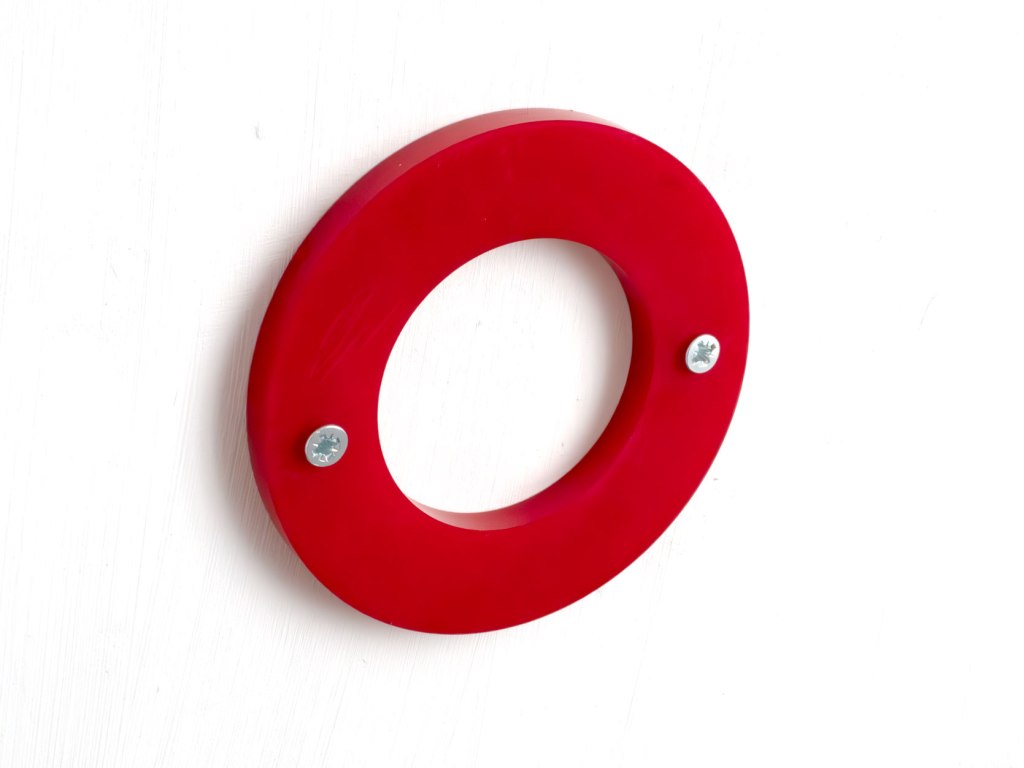 Dyed and drilled nylon. Three versions, each with 2 screws, series of 10 each:
