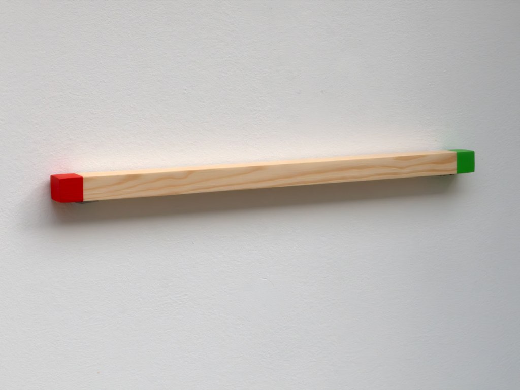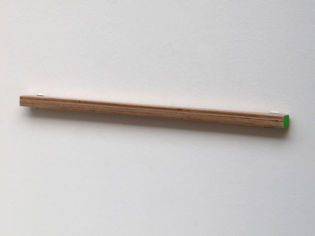Endgrain plywood, paint, varnish. Length = 520mm, Width = 18mm, Thickness = 18mm. Metal bracket wall fixings. Series of 8. Diagram of Plywood Baton