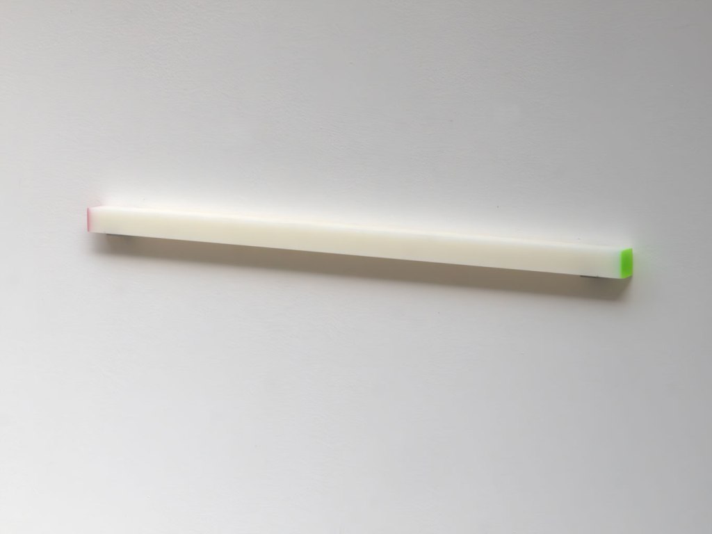 Aluminium tube, epoxy filler, paint. Length = 660mm, Width = 20mm, Thickness = 20mm. Metal bracket wall fixings. Series of 3. Diagram Aluminium Baton