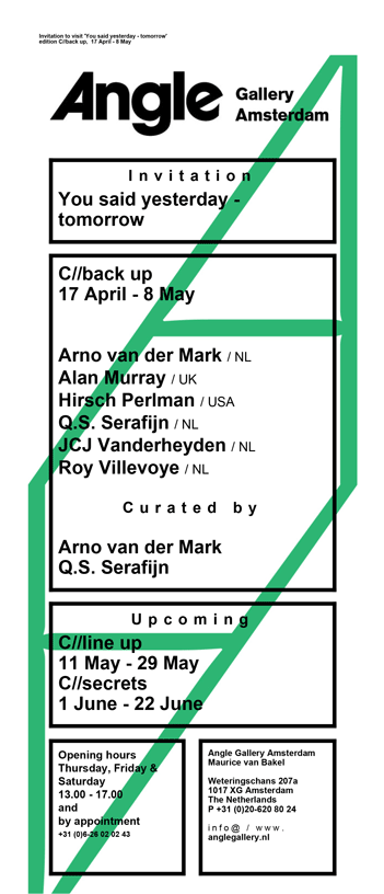 4.2014 – A four project series of exhibitions. Project 2, (C//Back up) exhibits artists who ‘turned their backs’ on the conventional ways of exhibiting and have sought alternative platforms and contexts.